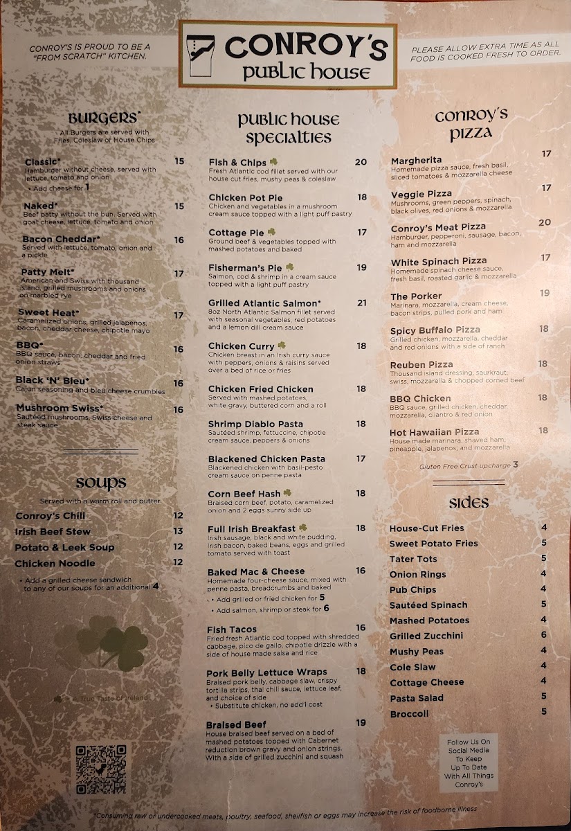 Conroy's is not just about the food; it's an experience filled with warm service and a welcoming atmosphere. Diners rave about the incredible flavors and cozy vibe that make each visit memorable. Whether you're a fan of classic dishes or exploring Irish cuisine for the first time, Conroy's Public House is a must-visit destination for truly satisfying meals.
